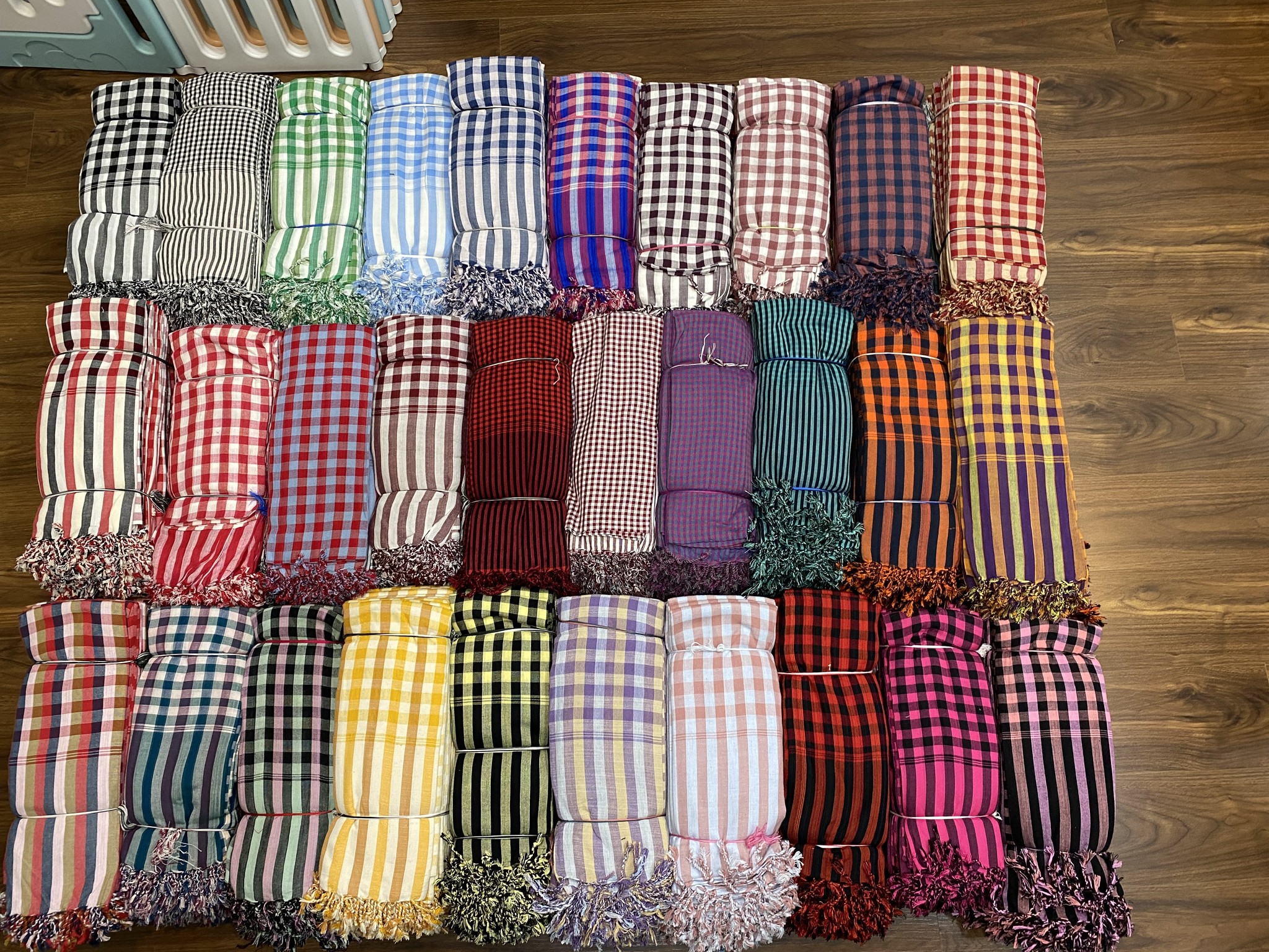 Chúng tôi cùng với làng nghề dệt choàng bên Campuchia cung cấp đến khách hàng những mẫu khăn rằn campuchia tốt nhất hiện nay. Với mức giá ưu đãi dành riêng cho những người có nhu cầu mua số lượng lớn và nhiều hơn thế nữa. Đặc biệt, các chương trình khuyến mãi liên tục sẽ được áp dụng đối với những ngày lễ tết.