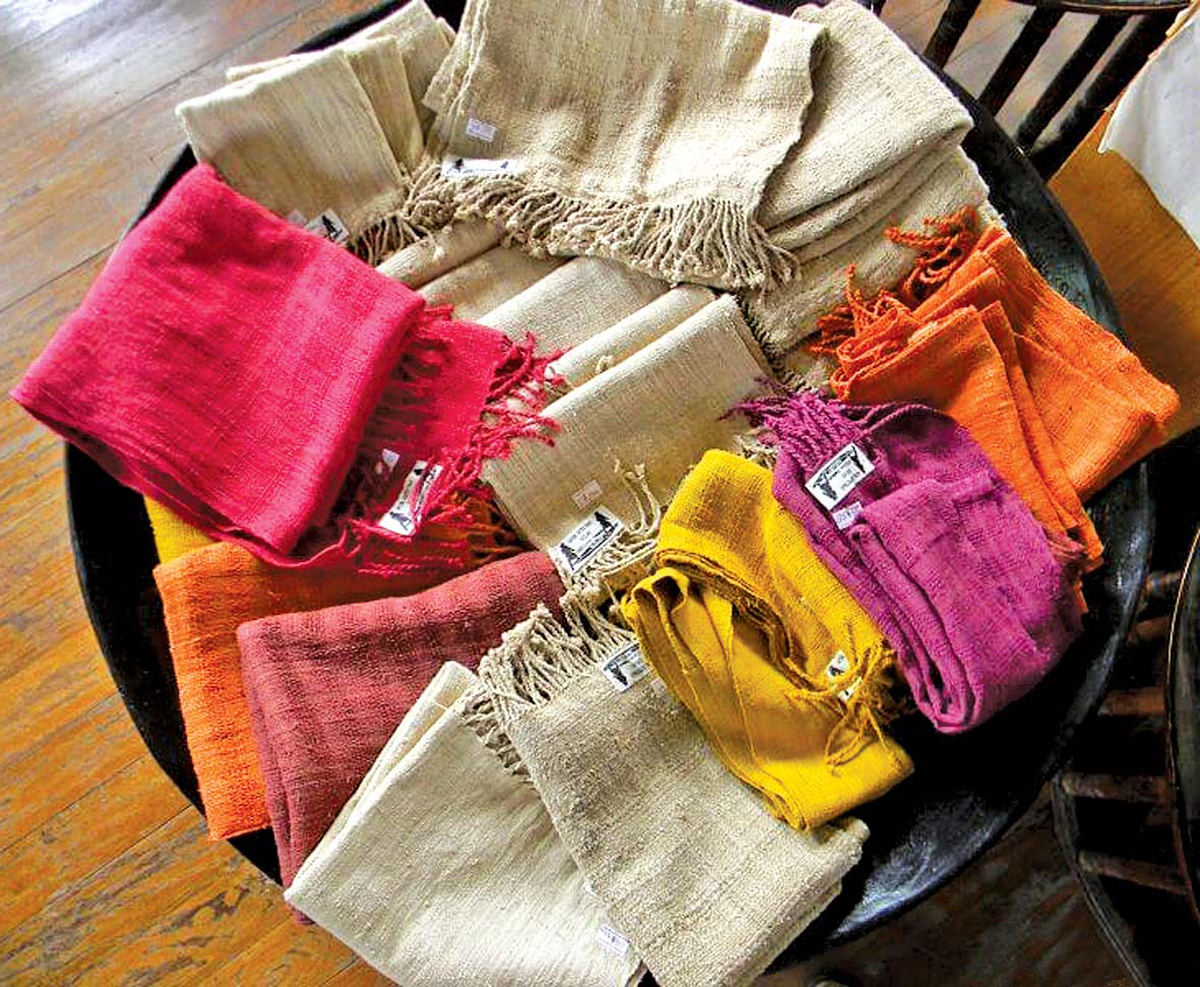 Khăn lụa tơ tằm được dệt từ sợi của con tơ tằm. Trải qua quá trình trồng tằm, nuôi dăm, ướm tơ tằm vào kén và muôn vàng những gian khổ khác mà cho đến khi dệt ra sợi tơ, người nghệ nhân phải oà khóc vì thực sự vất vả.