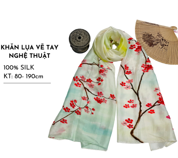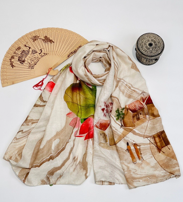 Khăn lụa made in Vietnam là cả một quá trình cố gắng gìn giữ bản sắc văn hóa dân tộc. Bởi vậy nên trên nền tấm lụa, bạn sẽ nhìn thấy hình ảnh của chùa một cột, hồ Hoàn Kiếm, Áo dài trắng, nón lá, cảnh đồng quê của Việt Nam. Đó là cả một bản sắc, văn hóa Việt Nam được thể hiện. Có thể nói, khăn lụa tơ tằm là một câu chuyện đặc sắc kể về văn hóa. Những sản phẩm liên quan đến văn hóa đều trở nên đặc sắc như thế.