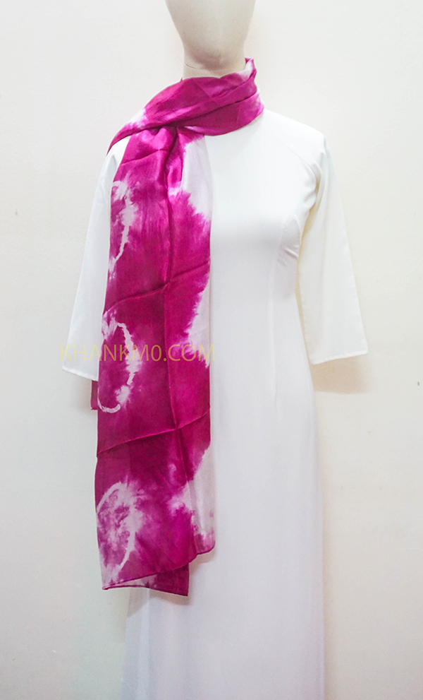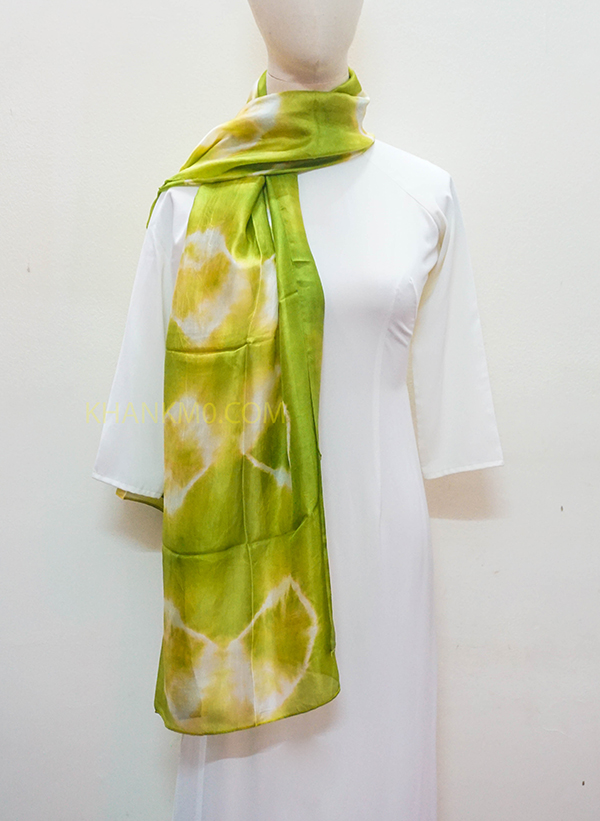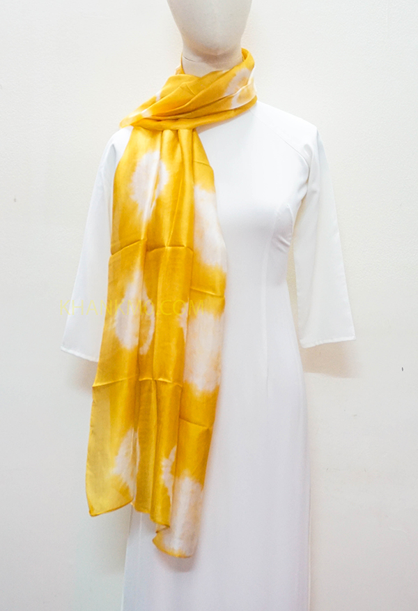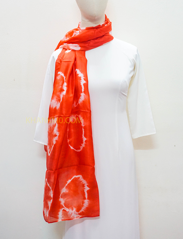 Mẫu khăn lụa tơ tằm hoa văn loang được làm bởi làng lụa Nha Xá với lịch sử hơn 700 năm phát triển. 100% lụa tơ tằm Việt Nam, mang đậm nét đẹp dân tộc.