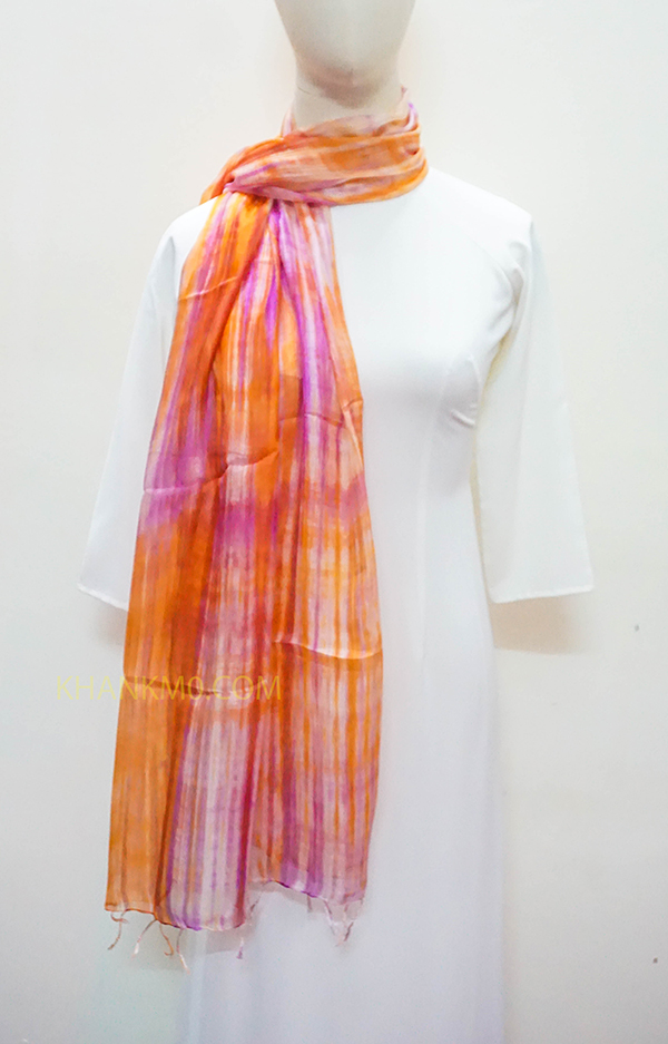 Mẫu khăn lụa tơ tằm tia được làm bởi làng lụa Nha Xá với lịch sử hơn 700 năm phát triển. 100% lụa tơ tằm Việt Nam, mang đậm nét đẹp dân tộc.
