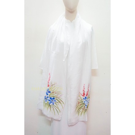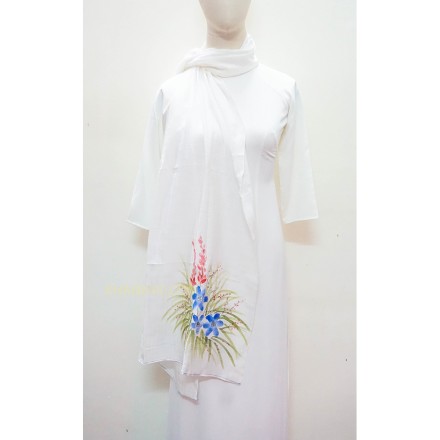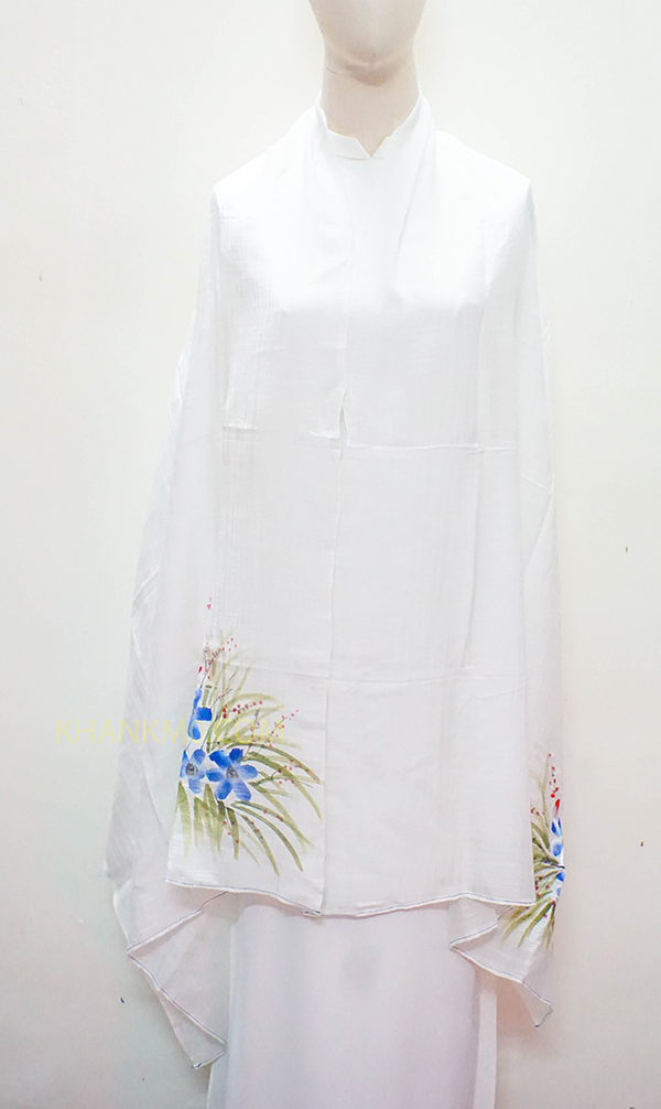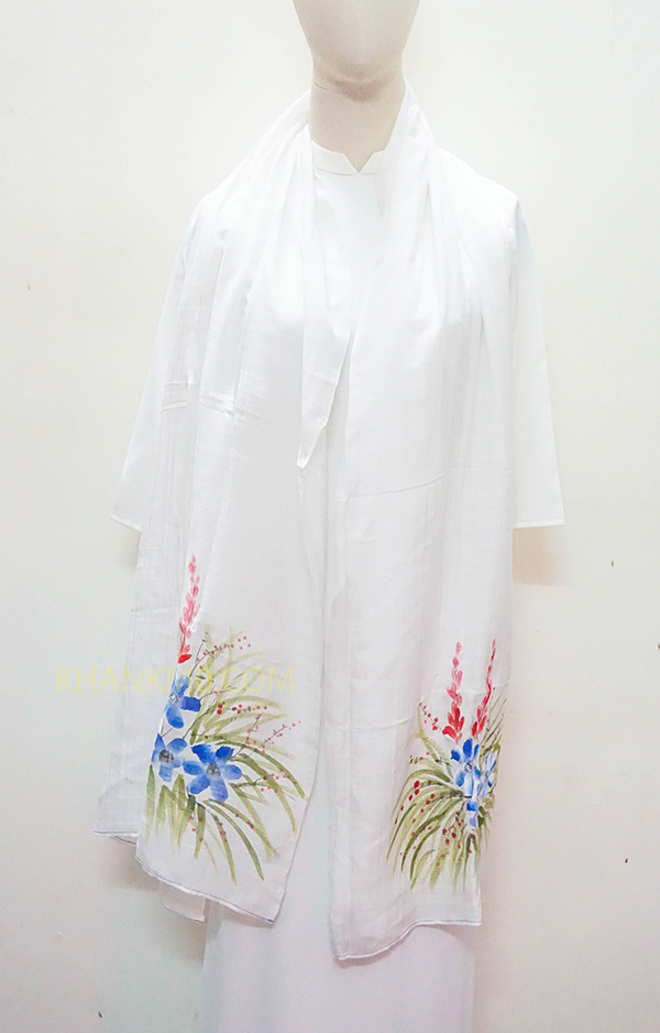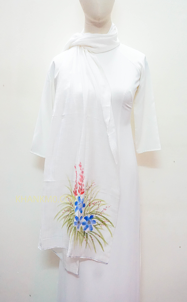 Mẫu khăn lụa tơ tằm vẽ hoa được làm bởi làng lụa Nha Xá với lịch sử hơn 700 năm phát triển. 100% lụa tơ tằm Việt Nam, mang đậm nét đẹp dân tộc.