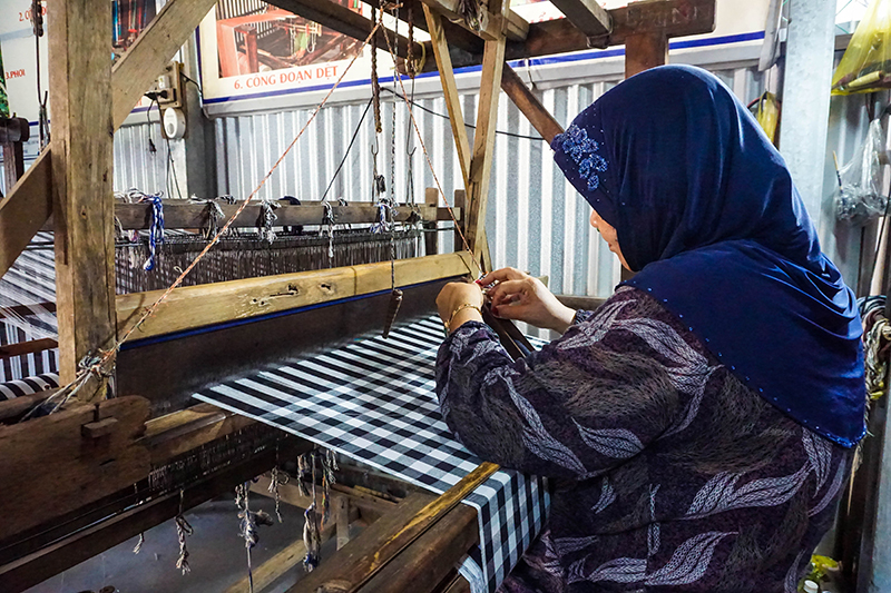Sự khác nhau này nó bắt đầu từ khung dệt. Trong khi người Đồng Tháp dùng khung dệt máy, cho sức máy dệt để tìm kiếm sản lượng tốt thì người Chăm Nam Bộ vẫn sử dụng tay để làm. Cái gì cũng có ưu thế của nó. Người Chăm Ninh Thuận đã sử dụng khung dệt tay của mình, đảo qua đảo lại giữa con thoi và đạp chân bên dưới khung. Họ sử dụng chất liệu sợi cotton mềm mại, mịn màng để làm. Còn sợi chỉ của người Đồng Tháp là sợi tổng hợp pha hồ nên khi dùng có khi sẽ cứng hơn, nhưng sẽ mềm khi được giặt đi vài lần.
