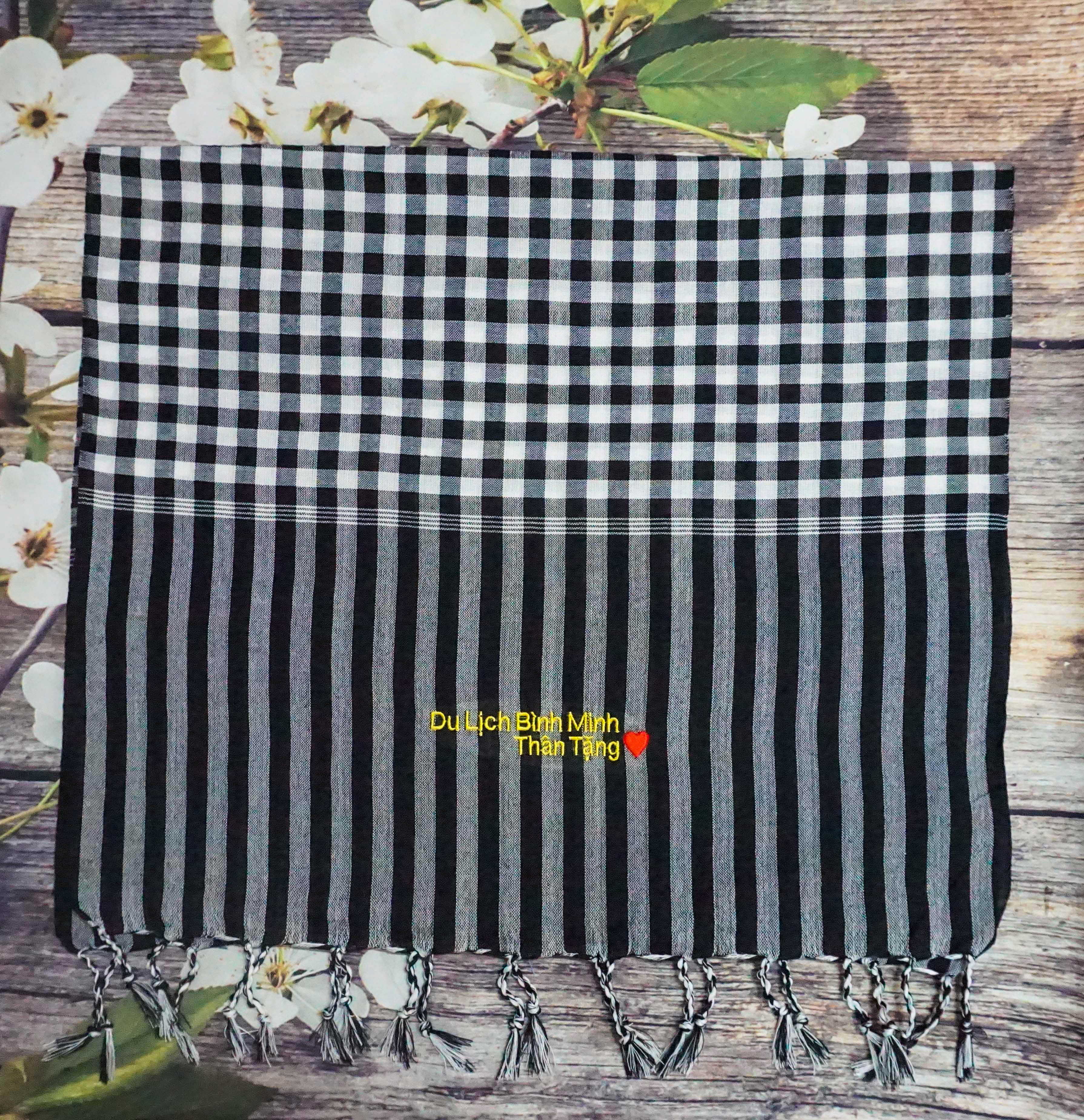 Shop Khăn Km0: Có em! Bên chị nhận dịch vụ thêu logo khăn rằn nam bộ và bán khăn rằn nam bộ