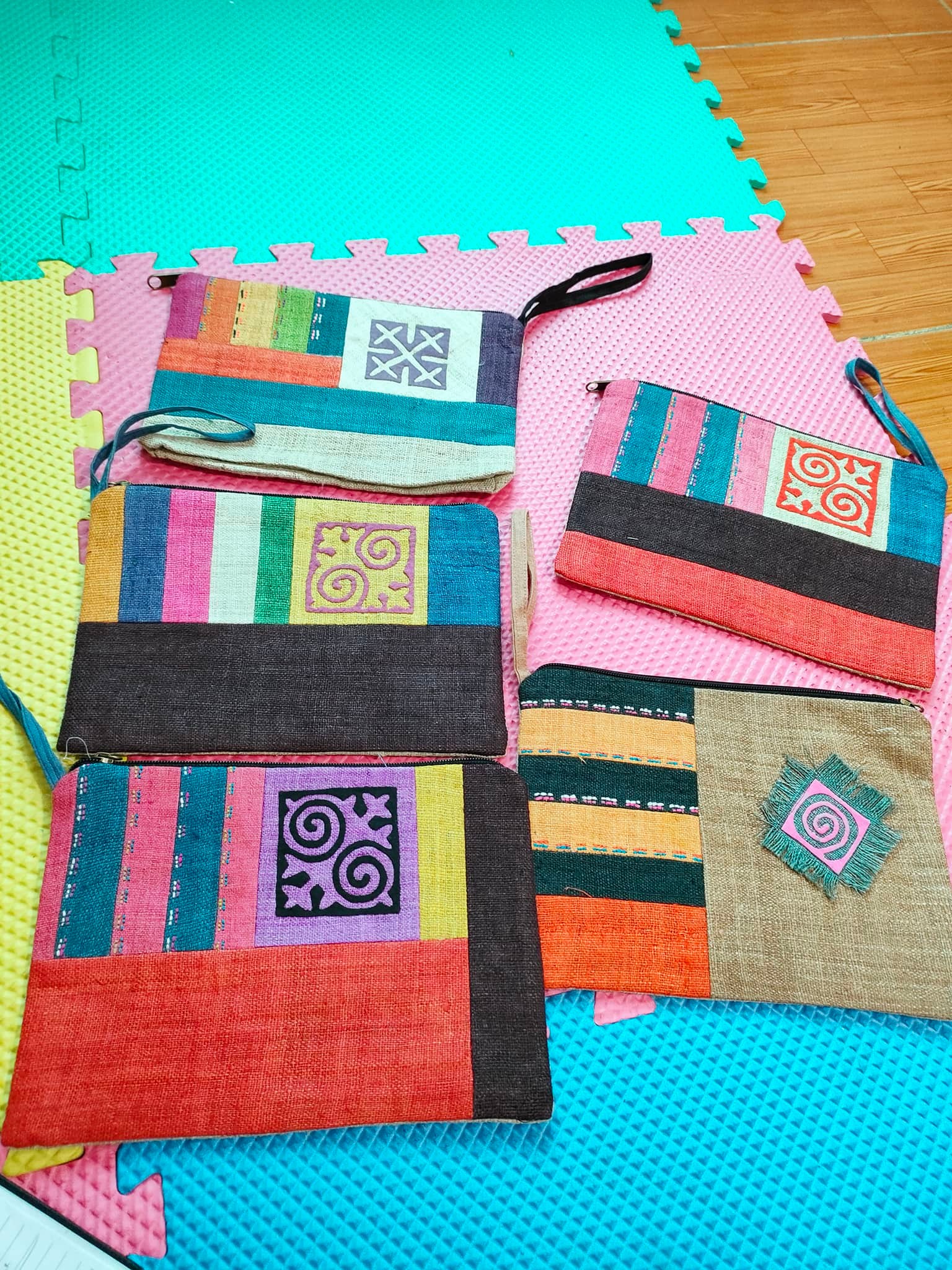Màu sắc của ví thổ cẩm được phối hết sức tinh tế và đẹp mắt. Cộng thêm những hoa văn được thêu thùa và vẽ sáp ong rất tinh tế khiến cho sản phẩm này càng hút khách.