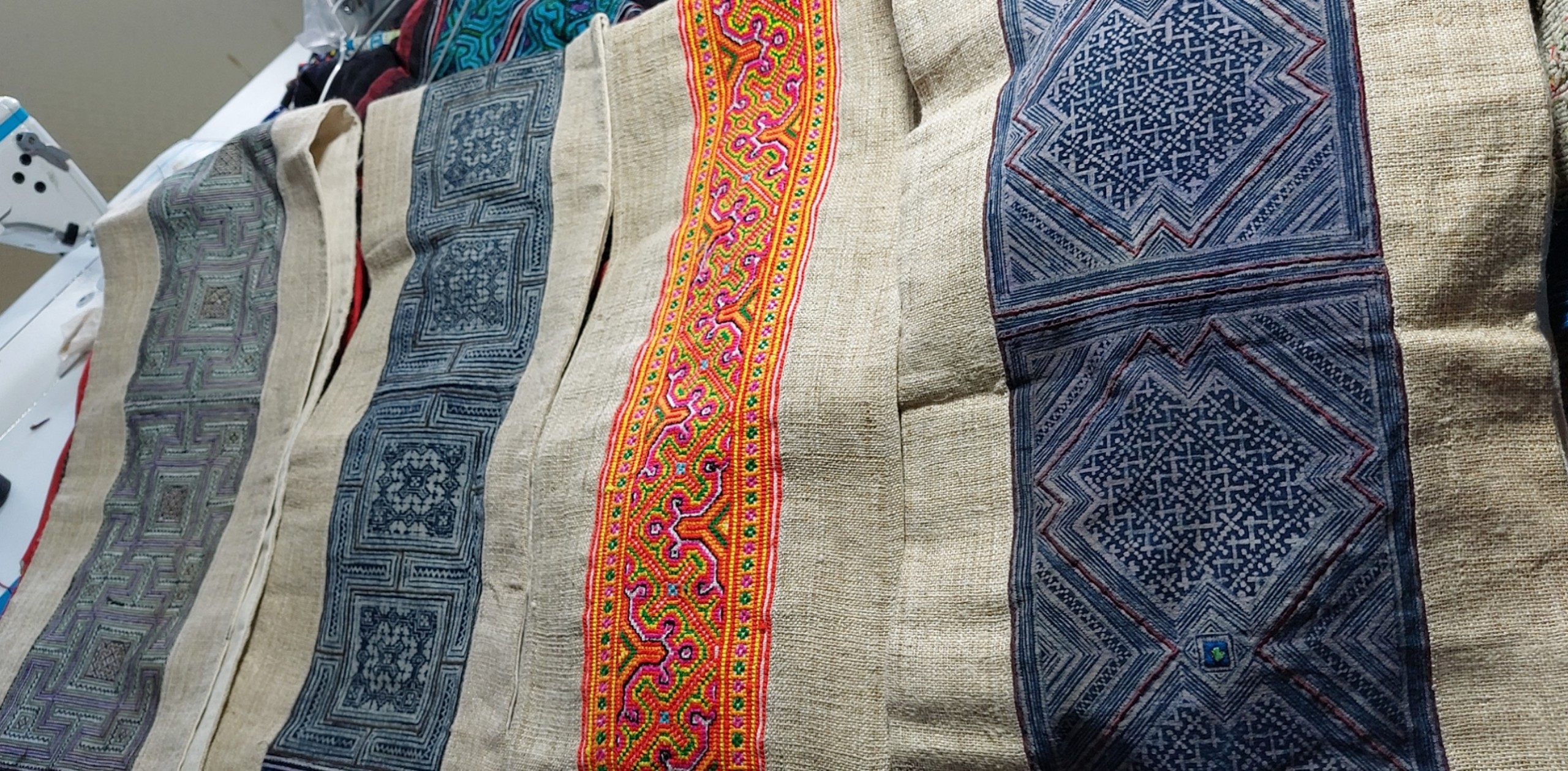 Sự tinh tế được thể hiện rõ ở từng đường kim mũi chỉ. Những người bà, người mẹ ở Sapa đã tỉ mẩn thêu tay để tạo ra những chiếc tranh thổ cẩm treo tường cực kỳ độc đáo. Đó chính là sự chắt chiu thời gian, công sức, là sự tận tâm được thể hiện qua từng bức tranh.