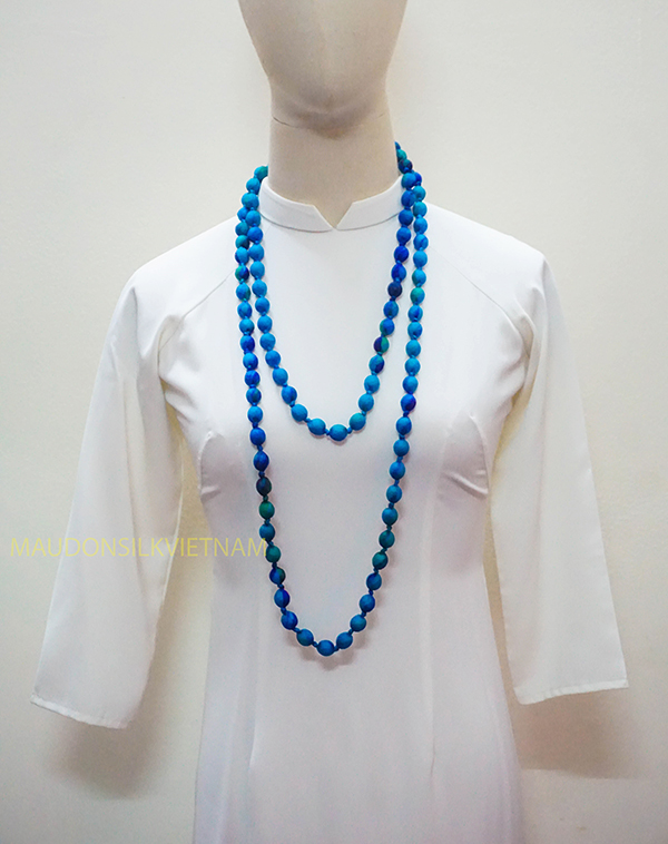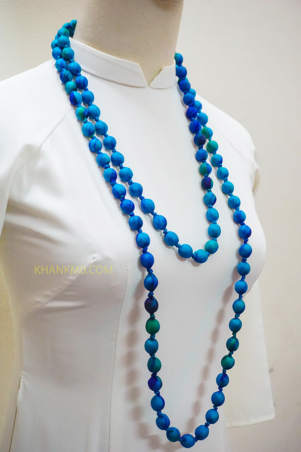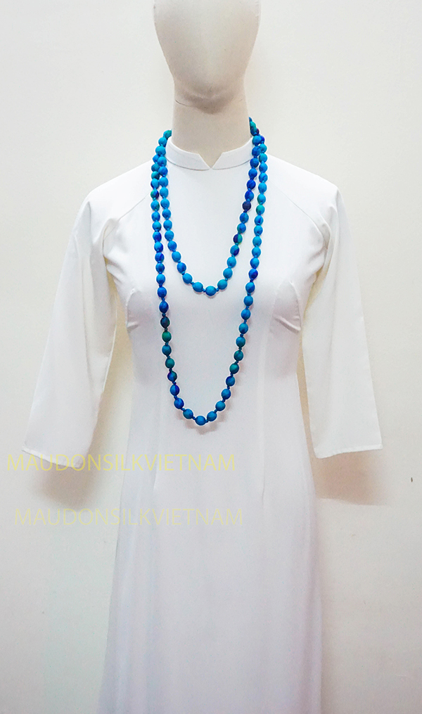 Vòng đeo cổ lụa tơ tằm được làm bởi làng lụa Nha Xá với lịch sử hơn 700 năm phát triển. 100% lụa tơ tằm Việt Nam, mang đậm nét đẹp dân tộc.