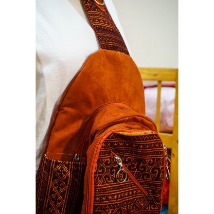 Balo thổ cẩm dân tộc Thái, sản phẩm được dệt thủ công, kết hợp phương pháp thêu hoa văn tinh tế. Với đôi bàn tay khéo léo của dân tộc Thái đã cho ra đời sản phẩm tinh tế, đẹp mắt.