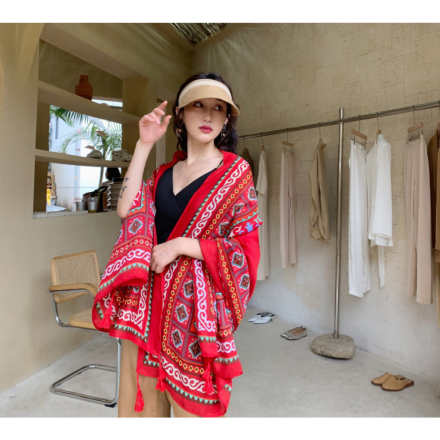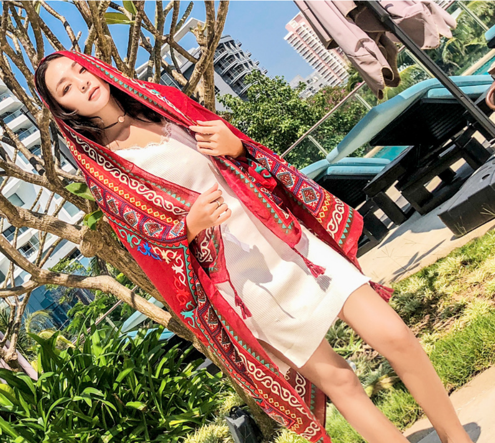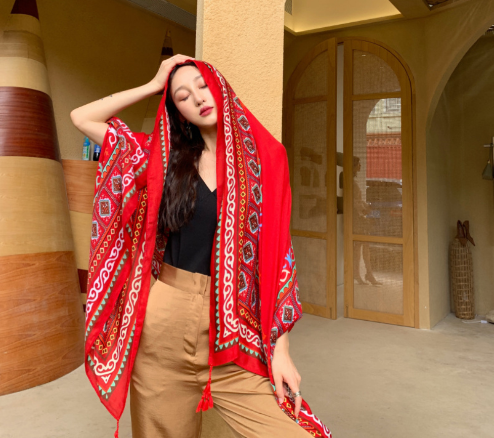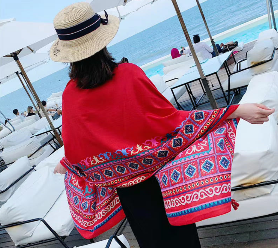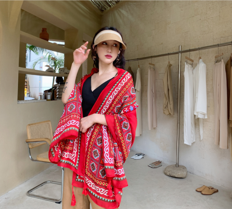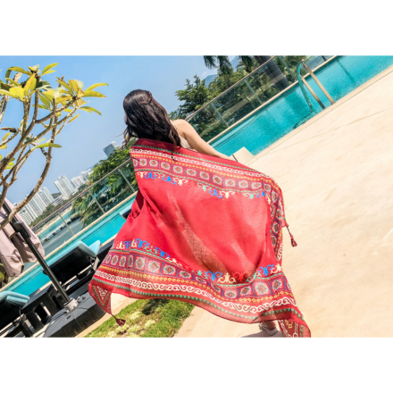 Khăn choàng đi biển đươc sử dụng khá nhiều, những chiếc khăn thổ cẩm đi biển muốn sử dụng cũng khá dễ dàng, bạn chỉ việc khoác lên mình và tạo nên những phong cách mà bạn ưng ý nhất.