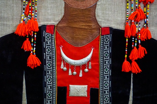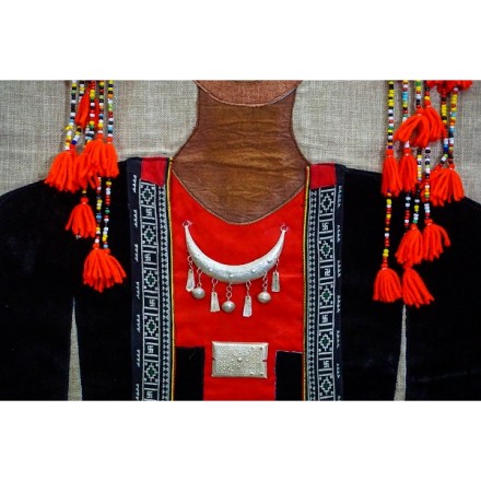 Dây chuyền thổ cẩm được làm bằng vải lanh, hoa văn dân tộc Mông. Đây là sản phẩm được nhiều tín đồ yêu thời trang thổ cẩm lựa chọn. Sản phẩm nhỏ gọn, có tính ứng dụng cực kỳ cao.