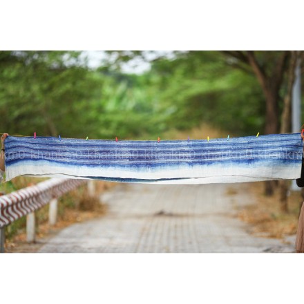 Vải miếng thổ cẩm được thêu tay bởi dân tộc Hmong ở Sapa, sản phẩm có màu xanh đặc trưng, cũng là màu sắc được người Hmong sử dụng khá nhiều trong đời sống hàng ngày.