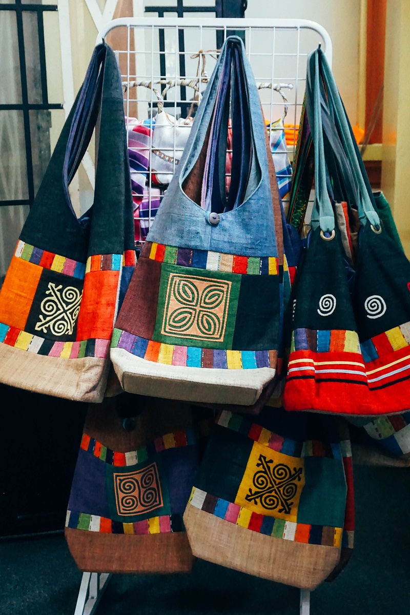 Bạn có thể bắt gặp một chiếc túi thổ cẩm của người Hmong, hoặc chiếc khăn thổ cẩm Thái, khăn thổ cẩm Tày được dệt tay một cách cẩn thận và công phu. Những sản phẩm như thế này mang trong mình vẻ đẹp của trí tuệ, lưu giữ thời gian, văn hóa của cả dân tộc.