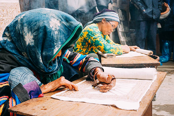 Và khi làm một chiếc khăn thổ cẩm Hmong, họ đều có những kỳ vọng riêng về họa tiết trang trí. Họ vẽ sáp ong lên những tấm vải trắng thô, sau đó thực hiện nhuộm chàm.
