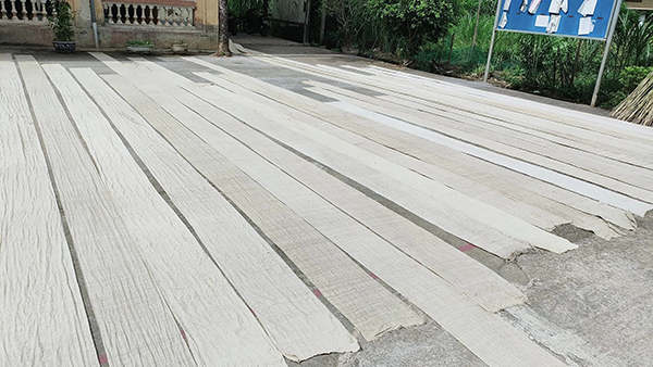 Thân cây đem tước, sau đó vò cho mềm, đem ngâm trong nước rồi họ đem đi giả sao cho nhuyễn. Sau cùng họ sẽ đem nối sợi lại với nhau để tạo thành sợi dài. Họ đem lấy sợi dài đó và dệt thành một tấm vải lanh màu trắng.